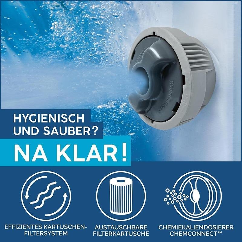 The Bestway BWAY AirJet Spa Honolulu 196x71 cm - 60019 brings the luxury of a soothing spa experience to your home or backyard with its superior design, durable construction, and user-friendly features. Designed to fit up to 4–6 people comfortably, this inflatable hot tub offers an invigorating massage experience with its powerful 120 AirJet bubbles that relieve stress and relax tired muscles. The stylish rattan print exterior gives it an elegant look that blends seamlessly into outdoor spaces. Its strong DuraPlus™ material and sturdy I-beam construction provide excellent structural stability and long-lasting performance. The spa features an easy-to-use digital control panel that allows you to adjust the water temperature up to 40°C and activate the AirJet massage system effortlessly. Setup is quick and simple with the built-in pump, allowing the spa to inflate within minutes without the need for extra tools. The included cover ensures better heat retention and keeps the water clean when the spa is not in use. The reinforced lid and safety clips add an extra layer of security and convenience. Perfect for social gatherings, family relaxation, or personal unwinding, the Bestway BWAY AirJet Spa Honolulu transforms any space into a private oasis of comfort and luxury. Its combination of premium materials, advanced features, and stylish design makes it an outstanding choice for those who want the ultimate spa experience at home.