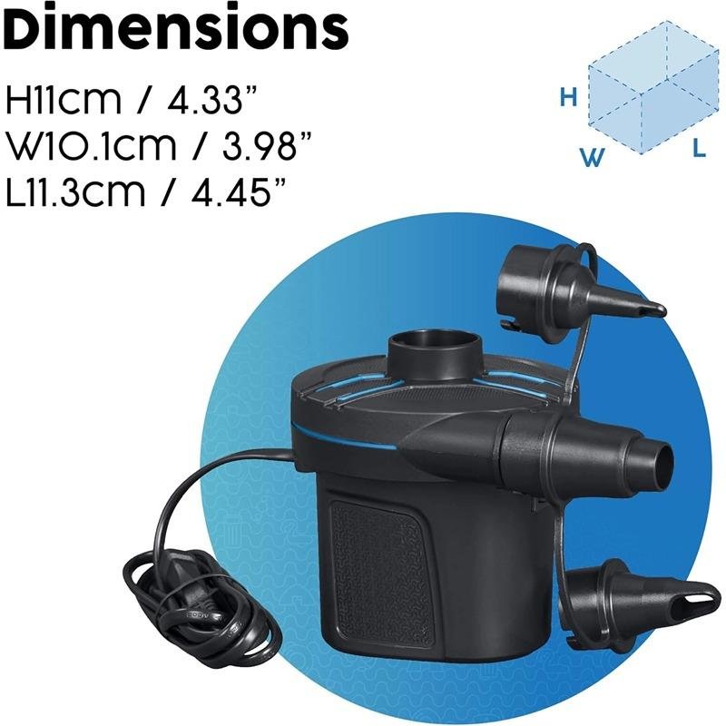 The Bestway BWAY AirPump AC PowerTouch – 62252 is designed to make inflating and deflating your favorite inflatable products quick, simple, and efficient. Whether you’re setting up an air mattress for guests, inflating a swimming pool, or deflating a raft after a fun day at the beach, this compact yet powerful electric pump has you covered. Its AC-powered functionality delivers reliable and continuous airflow, ensuring your inflatables are ready to use in no time. With its sleek, lightweight design, the PowerTouch pump is easy to transport and store, making it ideal for home use or on-the-go adventures. The pump comes with multiple nozzles, offering compatibility with a wide variety of inflatable items. Its one-touch operation makes it user-friendly, even for those who have never used an air pump before. Constructed from durable, high-quality materials, it’s built to last and withstand repeated use. Its energy-efficient motor not only ensures strong airflow but also keeps power consumption low. The ergonomic design allows for comfortable handling and easy maneuverability, while the black finish gives it a modern, stylish look. Whether you’re preparing for a weekend camping trip or simply need a convenient way to set up your pool accessories, the Bestway AirPump AC PowerTouch provides a dependable solution that saves time and effort. A trusted name in inflatable innovation, Bestway combines performance, durability, and user convenience in this must-have household accessory that promises to simplify your setup process for a wide range of inflatable products.