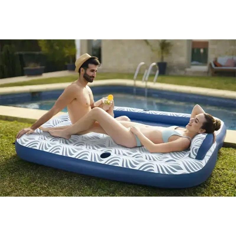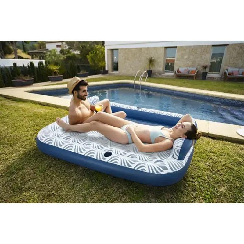 The Bestway BWAY Lounge Comfort Plush Double 204x188 – 43653 offers a luxurious and comfortable way to relax and recharge with a friend while enjoying the warmth of the sun and the refreshing water. Designed with a velvety Comfort Plush material, this double lounge features a soft, smooth texture that’s perfect for a relaxing day at the pool or lake. The material’s unique properties ensure the surface stays cool even under the hottest sun, keeping you comfortable while you lounge. When placed in water, the vibrant colors intensify, creating a visually appealing experience. The innovative CoolDown™ mesh seating area allows you to stay just below the surface of the water, providing a cool and refreshing sensation while you float. The mesh is durable and coated to prevent punctures or abrasions, ensuring the lounge withstands extended use. For added comfort, the lounge features ultra-cushioning pillows, so you can enjoy hours of relaxation in both style and comfort. Additionally, the lounge includes two built-in cup holders and two storage areas to keep your drinks, snacks, and essentials close at hand. A quick-release 2-way valve is integrated for easy inflation and deflation, allowing you to set up and pack away the lounge with minimal effort. Its foldable design makes it easy to store during the off-season, ensuring it’s always ready for your next adventure. Whether you’re floating with a friend in the pool, relaxing on the lake, or soaking up the sun by the beach, the Bestway BWAY Lounge Comfort Plush Double provides the ultimate combination of comfort, convenience, and style for your summer lounging experience.