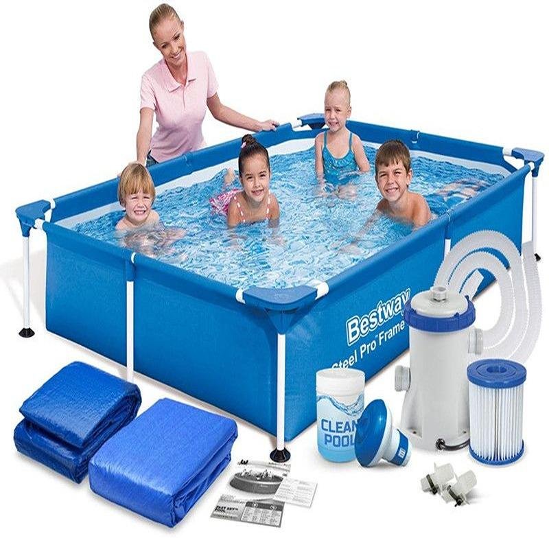 The Bestway BWAY Pool SteelPro 221x150x43CM M.M (Model 56401) is a compact and reliable above-ground pool designed for families and individuals seeking a convenient way to cool off during warm weather. Built with Bestway’s renowned Steel Pro frame system, this pool offers excellent durability and stability, thanks to its rust-resistant steel frame and high-quality materials. The DuraPlus™ liner, made from a three-layer reinforced material, is engineered for superior strength and puncture resistance, ensuring that the pool lasts season after season. With a water capacity of 1,200 liters when 90% full, this pool is perfect for small spaces and younger children, providing a safe and fun environment to splash and play. The rectangular design offers an efficient footprint that fits well in tight backyard spaces while still allowing room for movement and relaxation. Assembly is quick and easy, requiring no tools, and the pool can be disassembled just as effortlessly for storage when not in use. The compact size makes it ideal for patios, small gardens, or limited outdoor areas, while its sturdy structure ensures that safety and quality are never compromised. Whether you're looking for a way to entertain your kids, enjoy a relaxing dip, or add a touch of water fun to your summer days, the Bestway SteelPro 221x150x43CM pool offers a practical, durable, and affordable solution. Its lightweight design makes relocation easy, and the sleek look blends seamlessly with any outdoor décor. A great option for first-time pool buyers or families with limited space, this pool delivers unbeatable value and convenience in a stylish and compact package.