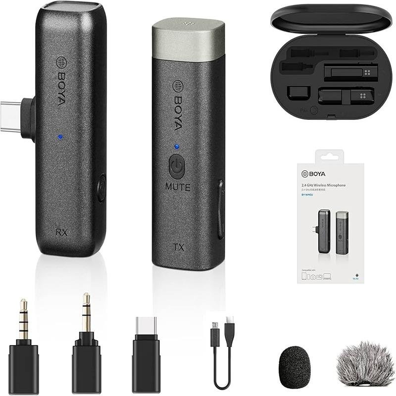 The Boya BY-WM3U Digital True-Wireless Microphone System is a high-quality, compact, and versatile audio solution designed for Android devices, cameras, and smartphones. Featuring 2.4GHz wireless transmission, the BY-WM3U offers excellent sound quality with low latency, making it an ideal choice for daily vlogs, live streaming, interviews, and various recording applications. The system consists of an ultra-compact transmitter and receiver, which deliver convenience without compromising on performance. The included charging case allows for easy pairing and charging, ensuring you can keep the system ready for use at all times. The BY-WM3U is a plug-and-play microphone system, making setup quick and simple without the need for complicated installations or additional software. Its wireless operation offers freedom of movement, whether you're capturing content for social media, conducting an interview, or recording on the go. With a sleek, portable design, the Boya BY-WM3U ensures you get professional-grade audio quality while maintaining the flexibility to use the microphone across multiple devices, including Android smartphones, cameras, and more. This makes it an essential tool for content creators, streamers, and professionals who need reliable, high-performance audio without the hassle of tangled wires.