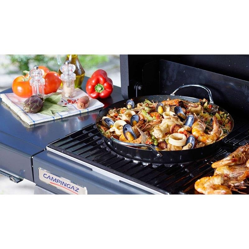 The CAM2000037286 Campingaz BBQ 4 Series Premium S 37286 is the epitome of outdoor cooking excellence, designed for those who appreciate high-quality grilling and entertaining. This premium gas barbecue features four powerful burners that provide exceptional heat distribution, allowing you to cook a variety of dishes simultaneously with precision. The spacious cooking area is complemented by a side burner, perfect for preparing sauces or side dishes while grilling. Crafted with durable materials, including a stainless steel lid and enamel-coated cast iron cooking grates, this BBQ ensures longevity and easy maintenance. The integrated thermometer allows for accurate temperature monitoring, ensuring your meals are cooked to perfection every time. The electronic ignition system guarantees quick and reliable start-ups, while the removable grease tray simplifies cleanup after your grilling sessions. With its sleek and modern design, the Campingaz BBQ 4 Series Premium S 37286 not only performs exceptionally but also enhances the aesthetic appeal of your outdoor space. Whether you’re hosting a summer barbecue, a family gathering, or a cozy evening with friends, this BBQ is engineered to meet all your grilling needs, making it an essential addition to any patio or garden.