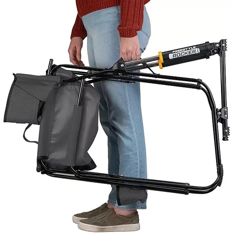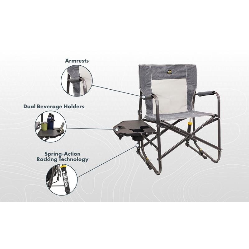The GCI 371147 Freestyle Rocker™ with Side Table in Heathered Pewter is the perfect companion for outdoor enthusiasts who value comfort and convenience. This innovative rocking chair features a patented Eazy-Fold™ technology that allows for quick and effortless setup and takedown, making it ideal for camping, tailgating, or simply enjoying a relaxing day in your backyard. The chair is constructed with a sturdy powder-coated steel frame, ensuring durability and stability for all your outdoor adventures. The breathable mesh fabric provides excellent ventilation, keeping you cool during warm days, while the high backrest and padded armrests offer exceptional support for extended periods of relaxation. The addition of a side table enhances functionality, providing a convenient space for drinks, snacks, or personal items, making it perfect for social gatherings or quiet moments alone. Its lightweight design allows for easy transport, and the compact foldability ensures convenient storage in your vehicle or home. The stylish Heathered Pewter color adds a modern touch to your outdoor setup, seamlessly blending with various environments. Whether you’re reading a book, enjoying a campfire, or watching a game, the GCI Freestyle Rocker™ with Side Table promises to elevate your outdoor experience with its thoughtful design and user-friendly features.