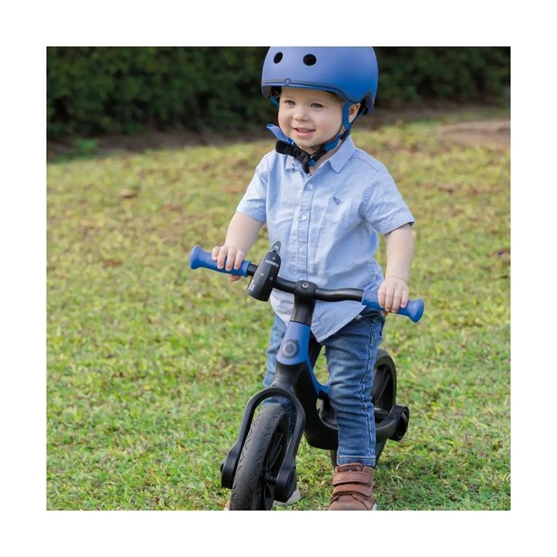 The GLOBBER 10" GO BIKE in Navy Blue is an innovative and well-designed balance bike created to help toddlers aged 2-5 years develop essential skills like coordination, balance, and motor control. The bike features a unique 2-stage reversible steel frame that adapts as your child grows. The low frame position is ideal for younger toddlers, helping them work on their balancing skills, while the high frame position allows for continued use as they get older. The bike’s adjustable saddle offers 8 height settings (4 per frame position) made of soft, comfortable PU, ensuring a personalized fit for your child. Additionally, the curved metal handlebars are equipped with durable TPR ergonomic grips for extra comfort, and they offer 2 adjustable height options. Built to last, the GO BIKE supports up to 20kg and is constructed with a robust steel frame. The bike’s 215mm (8.5”) EVA foam wheels provide a smooth, puncture-free ride, ensuring your toddler enjoys a safe and comfortable ride. Whether your child is learning to balance for the first time or refining their skills, the GLOBBER 10" GO BIKE is the perfect companion for every adventure, making learning fun and safe. Its durability, adjustability, and comfortable design make it an excellent choice for growing toddlers looking to build their confidence and coordination.