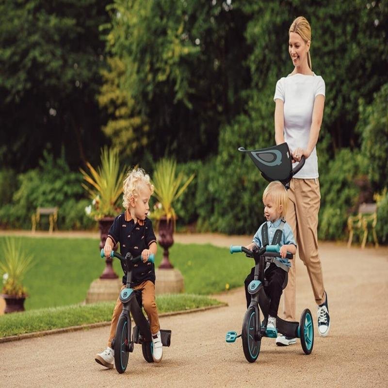 The GLOBBER EXPLORER TRIKE TRICYCLE (4 in 1) in Teal is the ultimate all-in-one ride designed to grow with your child, providing fun, safety, and developmental benefits from toddlerhood to early childhood. This versatile tricycle adapts to your child’s needs as they develop, offering four modes: Infant Trike (10-36 months), Guided Trike (18-36 months), Training Trike (24-36 months), and Balance Bike (2-5 years). Each mode provides an exciting opportunity to learn, explore, and develop essential skills like balance and coordination. The patented wheel mechanism allows for easy, tool-free transformation from one mode to the next, making it simple and quick to adjust as your child’s abilities grow. The Infant Trike mode is equipped with a 5-point safety harness, soft shoulder pads, a high-back seat, and a safety bar, ensuring your little one is secure while riding. As your child grows, the guided and training modes offer further support, and the balance bike mode helps improve their balance and confidence without pedals. Designed for maximum comfort and safety, the GLOBBER EXPLORER TRIKE is ideal for both boys and girls, with a footrest for toddlers and sturdy wheels for a smooth ride. Perfect for children aged 10 months to 5 years, this tricycle is a fantastic way to encourage outdoor play and physical activity, while developing motor skills and independence.