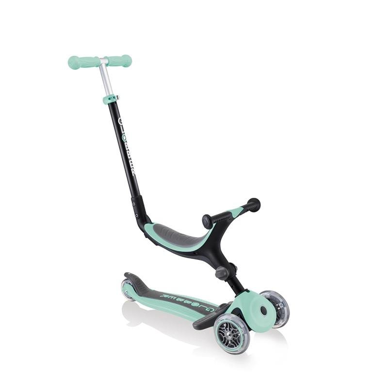 The GLOBBER GO•UP FOLDABLE PLUS LIGHTS SCOOTER in Mint is the perfect ride for toddlers as young as 15 months, offering a fun and safe way to explore the outdoors on wheels. This versatile 3-in-1 scooter easily transforms from a ride-on to a walking bike and then to a toddler scooter, allowing your child to enjoy it at every developmental stage. With a 100% tool-less design, you can quickly and easily switch between modes, adjusting the seat height using a simple, accessible knob. The scooter also features a 3-height adjustable T-bar, ensuring your child has a comfortable ride as they grow. The removable footrest provides added comfort in ride-on mode, while the patented folding system allows the scooter to be converted into trolley mode for convenient transport. The GLOBBER GO•UP FOLDABLE PLUS LIGHTS also includes battery-free LED light-up wheels, making it even more exciting and fun for your toddler. Whether it’s for a stroll, a ride, or an adventure, this scooter provides a smooth and enjoyable experience that supports balance, coordination, and motor skills development. Designed with durability and ease of use in mind, the GLOBBER GO•UP FOLDABLE PLUS LIGHTS SCOOTER in Mint is the ideal outdoor companion for active toddlers, offering years of enjoyment and growth.