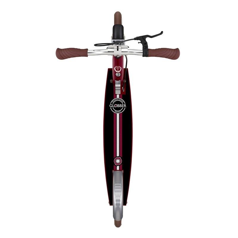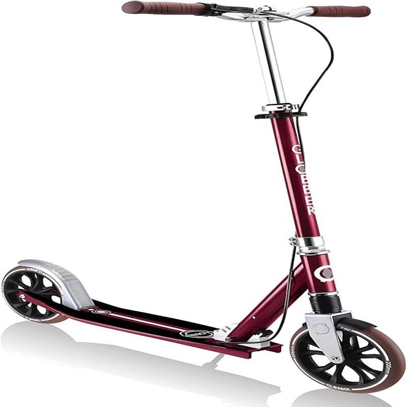 The GLOBBER NL500-205 DELUXE Scooter - High Gloss Burgundy is the ultimate combination of style, comfort, and performance, designed for teens and kids aged 8+ who love cruising around the city in style. With its eye-catching high gloss burgundy finish, this scooter is perfect for those who want to make a statement while enjoying a smooth, efficient ride. The 205mm big wheels offer an excellent balance between speed and stability, making it easy to glide over city pavements and rougher surfaces. Thanks to the front suspension, the ride is exceptionally smooth, absorbing shock and providing greater comfort even on uneven terrain. This deluxe scooter features dual brakes—a rear foot brake and a handlebar brake—for enhanced safety and control while stopping. The robust aluminium deck comes with anti-slip grip tape, ensuring both durability and stability. With Globber’s patented folding system, you can easily fold and store the scooter when not in use. The scooter is also equipped with a 3-height adjustable T-bar, allowing it to grow with your child, providing long-lasting enjoyment. Whether your child is commuting to school, zooming through the park, or simply out for a fun ride, the NL500-205 DELUXE offers both practicality and style for every urban adventurer.