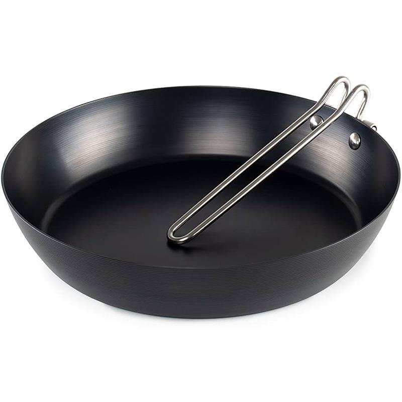 The GSI 60020 Carbon Steel 10" Frypan is a versatile and durable cooking tool designed for both outdoor enthusiasts and home chefs. Crafted from high-quality carbon steel, this frypan offers excellent heat retention and distribution, ensuring that your meals are cooked evenly and efficiently. Its 10-inch diameter provides ample cooking space, making it ideal for frying, sautéing, and searing a variety of ingredients. The frypan features a natural, non-stick surface that improves with use, allowing for easy food release and effortless cleaning. The sturdy handle is designed for a comfortable grip and is riveted for added strength, ensuring that it can withstand the rigors of outdoor cooking. Whether you're preparing a hearty breakfast over a campfire or whipping up a quick dinner in your kitchen, the GSI 60020 Frypan is built to deliver exceptional performance. Its lightweight design makes it easy to transport, while the rugged construction ensures it can handle the demands of any cooking environment. This frypan is not only functional but also stylish, with a classic look that complements any cookware collection. With the GSI 60020 Carbon Steel Frypan, you can enjoy the benefits of professional-grade cookware in your own home or on your next outdoor adventure.