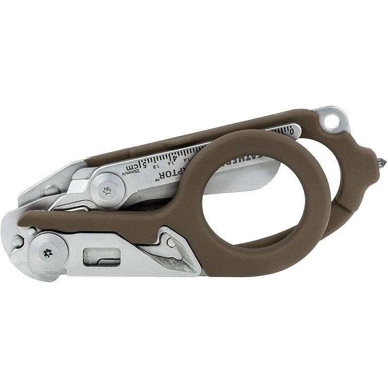 The 832176 Leatherman Raptor in Tan is a versatile and essential multi-tool designed for emergency medical professionals, outdoor enthusiasts, and anyone who values preparedness in critical situations. This innovative tool combines a sleek, ergonomic design with robust functionality, making it an indispensable companion for various tasks. Constructed from high-quality stainless steel, the Raptor is built to withstand rigorous use while maintaining its sharpness and reliability. The tan color not only provides a unique aesthetic but also enhances visibility in outdoor environments. The Raptor features a range of essential tools, including premium medical shears, a strap cutter, a ring cutter, and a built-in ruler, all engineered to handle a variety of tasks efficiently. Its compact design allows for easy storage on the included utility peg, ensuring that it is always within reach when needed. The medical shears are capable of cutting through tough materials, making them invaluable in emergency situations, while the strap cutter provides quick access to safety gear. Additionally, the ring cutter allows for the safe removal of jewelry in critical scenarios. The Raptor also includes a lanyard hole for convenient attachment to bags or gear, enhancing its portability. With a focus on user safety and convenience, the Leatherman Raptor Tan is an essential tool for anyone who values efficiency and preparedness in their daily activities.