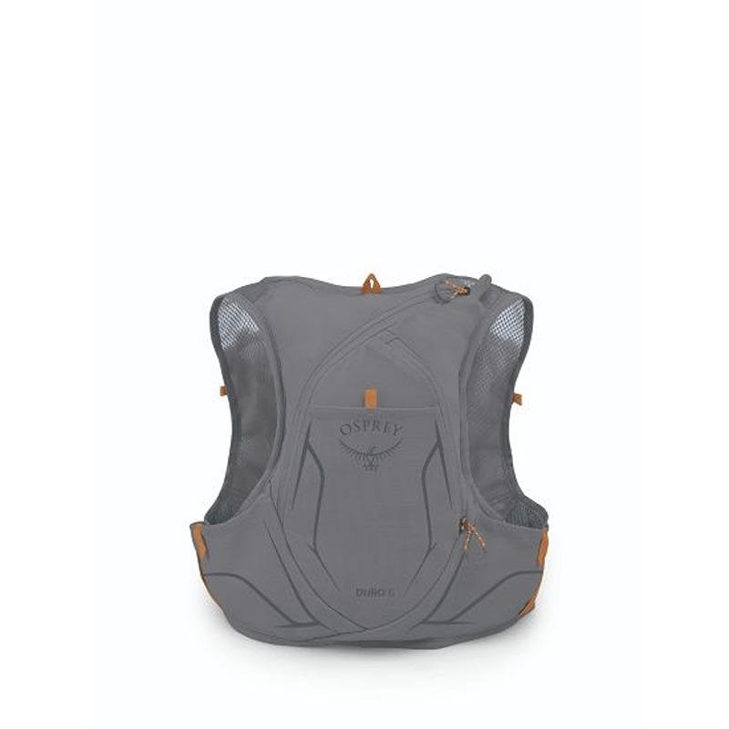 The Osprey Duro 6 is a compact and efficient running vest designed for athletes who prioritize lightweight performance and convenience during their outdoor activities. Featuring a stylish Phantom Grey and Toffee Orange color scheme, this vest is not only visually appealing but also highly functional. With a capacity of 6 liters, it is perfect for short to medium-distance runs, trail running, or hiking, providing just the right amount of storage for essentials like hydration, snacks, and gear. The vest includes two 500ml soft flasks that fit securely in the front pockets, allowing for easy access to hydration while on the move. Its breathable mesh back panel and adjustable harness system ensure a comfortable fit that minimizes bounce and maximizes airflow, making it ideal for warm weather conditions. The Duro 6 is equipped with multiple pockets, including a zippered pocket for secure storage of valuables and stretch mesh pockets for quick access to energy gels or other small items. Designed for both men and women, this vest is available in size small and accommodates various body types. The durable construction ensures it can withstand the rigors of outdoor adventures, while the reflective detailing enhances visibility in low-light conditions. Whether you're hitting the trails or going for a run in the park, the Osprey Duro 6 is the perfect companion for those who seek comfort, convenience, and style in their outdoor gear.