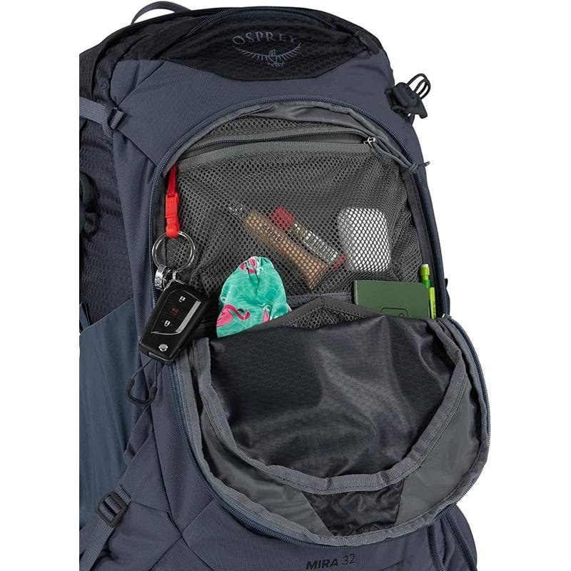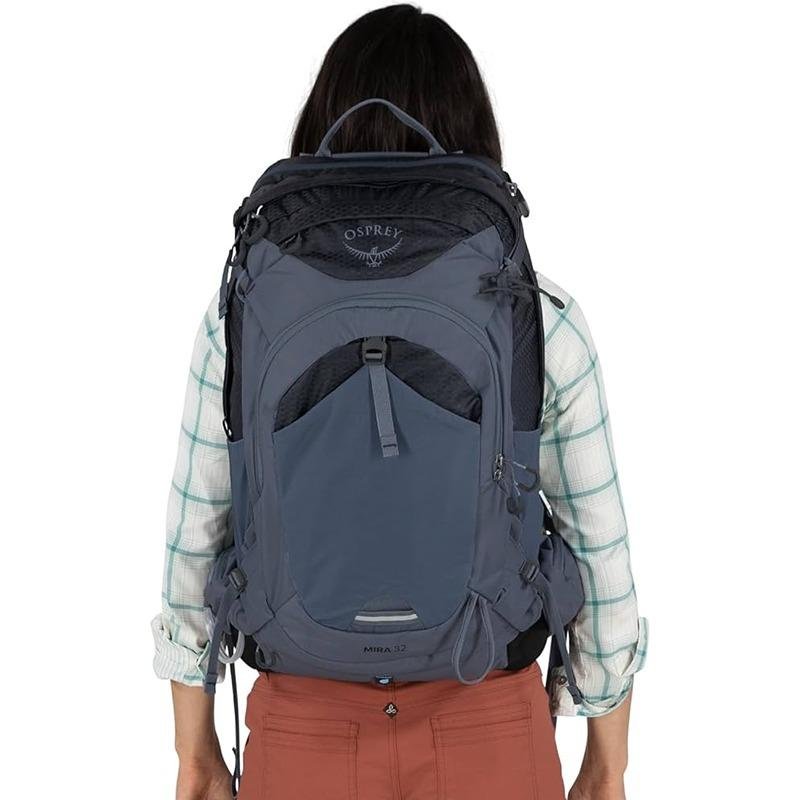 The Osprey Mira 32 is a thoughtfully designed women's daypack that combines functionality, comfort, and style, making it an ideal choice for outdoor adventures. Available in a striking Res Anchor Blue color, this pack is perfect for day hikes, weekend getaways, or any outdoor activity where you need to carry your essentials. With a capacity of 32 liters, the Mira 32 offers ample space for gear, while its AirScape back panel and adjustable harness ensure a comfortable fit that conforms to your body. The pack features a top-loading design with a drawstring closure for easy access to your belongings, and it includes a dedicated hydration reservoir sleeve to keep you hydrated on the go. Multiple pockets, including a front stretch mesh pocket and side mesh pockets, provide convenient storage options for quick access to snacks, layers, or other essentials. The Mira 32 is also equipped with a built-in rain cover, ensuring your gear stays dry during unexpected weather changes. Weighing just 2.6 pounds, this lightweight pack is designed for those who prioritize both comfort and performance. Whether you're hiking through rugged terrain or enjoying a leisurely stroll, the Osprey Mira 32 is engineered to meet the demands of your active lifestyle, making it a reliable companion for all your outdoor adventures.