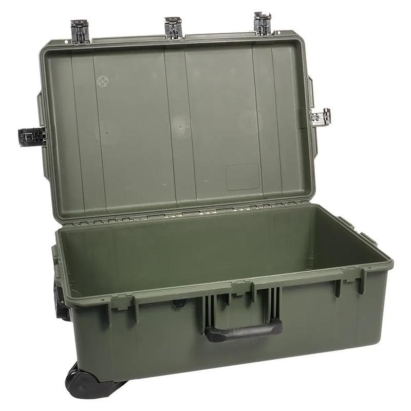 The Pelican IM2950 Storm Case is a robust and versatile storage solution designed to protect your valuable equipment in the most demanding environments. Engineered in the USA, this case inherits the legendary durability of the Pelican Protector Case while introducing innovative features such as the unique Press and Pull latch system, which locks automatically yet opens effortlessly with a gentle touch. Constructed from high-quality materials, the IM2950 is built to withstand harsh conditions, making it ideal for professionals in various fields, including photography, military, and outdoor adventures. The case is equipped with five Press & Pull latches that ensure a secure closure, while two double-layered, soft-grip handles provide comfort during transport. Additionally, it features two padlockable hasps for added security, powerful hinges for enhanced durability, and an O-ring seal that protects against dust and water ingress. With its spacious interior and customizable foam options, the Pelican IM2950 is perfect for organizing and safeguarding your gear, ensuring that it remains intact and accessible when you need it most.