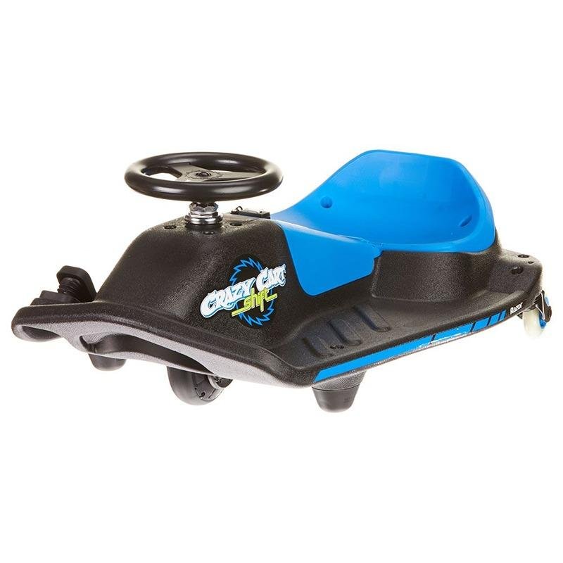 The RAZOR Crazy Cart Shift Blue 13KM/H 6+ – 25173840 is the ultimate electric drifting experience for younger riders, delivering endless fun, excitement, and adrenaline in a kid-friendly, easy-to-control package. Designed specifically for children aged 6 and up, this compact version of Razor's award-winning Crazy Cart introduces younger riders to the thrill of spinning, sliding, and drifting with unmatched safety and control. Powered by a high-performance 90W hub motor, the Crazy Cart Shift reaches speeds of up to 13 km/h and is equipped with Razor’s patented drift system, allowing riders to effortlessly transition between controlled drifts and straightforward driving. The simplified throttle and brake system make it easy for beginners to operate, with the push-button acceleration and a rear foot brake for quick stops. The high-impact polymer frame is ultra-durable while maintaining a lightweight design, making it perfect for kids to maneuver and transport easily. The Shift’s low-profile seat and adjustable steering system provide a comfortable and secure ride that promotes balance, coordination, and confidence. Its solid front wheel and dual rear caster wheels enable 360-degree spins and tight turns on flat surfaces, offering the sensation of racing in a fun, safe way. With up to 40 minutes of continuous ride time on a single charge from the 12V battery, kids can enjoy extended play sessions full of high-energy drifting and spinning. The cool blue design adds a stylish touch that stands out in any driveway or play area. Whether it’s for casual play or adventurous racing, the RAZOR Crazy Cart Shift Blue is the perfect starter electric drift cart for growing thrill-seekers.