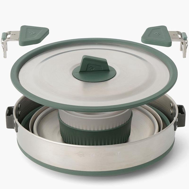 The SS01260 S2S Detour Stainless Steel One Pot Cook Set is the ultimate solution for outdoor cooking enthusiasts and those who appreciate the convenience of a compact kitchen setup. This versatile 5-piece set includes a spacious 3-liter pot, two durable bowls, and two sturdy mugs, all crafted from high-quality stainless steel to ensure longevity and resistance to rust. The pot's generous capacity makes it perfect for preparing meals for small groups, whether you're camping, hiking, or enjoying a picnic. The sleek design not only enhances the aesthetic appeal but also promotes even heat distribution for efficient cooking. Each component is lightweight, making it easy to carry without adding unnecessary bulk to your gear. The bowls and mugs are designed for easy stacking within the pot, ensuring that your cooking set remains compact and organized during transport. The SS01260 set is compatible with various heat sources, including campfires and portable stoves, making it an ideal companion for any outdoor adventure. Additionally, the stainless steel material is easy to clean, ensuring that you can maintain hygiene effortlessly after each use. With its combination of functionality, style, and portability, the SS01260 S2S Detour Cook Set is a must-have for anyone who enjoys cooking on the go or needs a reliable cooking solution for their kitchen.