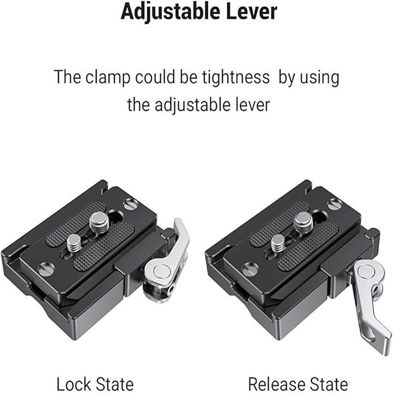 The SmallRig Arca-Swiss Quick Release Mount Plate Kit 2144B is designed to provide a reliable and efficient mounting solution for photographers and videographers using Arca-Swiss compatible systems. Crafted from high-quality aluminum alloy, this plate offers a robust and durable build while remaining lightweight and scratch-resistant, making it ideal for both fieldwork and studio environments. The precision mechanism ensures a secure fit, and the lever-type base plate allows for quick disassembly, offering fast transitions between setups. The clamp’s tightness can be adjusted by turning a small screw on the lever, providing the flexibility to fit various camera setups securely. This plate is designed to attach to the bottom of cameras or cages using screws, ensuring a solid and stable connection. Additionally, the clamp is equipped with several 1/4'' and 3/8'' threaded holes on the bottom, allowing you to easily mount the plate on tripods, sliders, or other devices that require a quick-release mount. The SmallRig 2144B is compatible with various Arca-Swiss standard quick-release plates, enhancing its versatility across different platforms. Whether you're capturing stills or videos, this quick-release mount plate kit offers convenience, reliability, and stability, allowing you to work more efficiently and effectively. Its solid build quality ensures that your camera or cage remains securely mounted while giving you the flexibility to move quickly between shooting setups.
