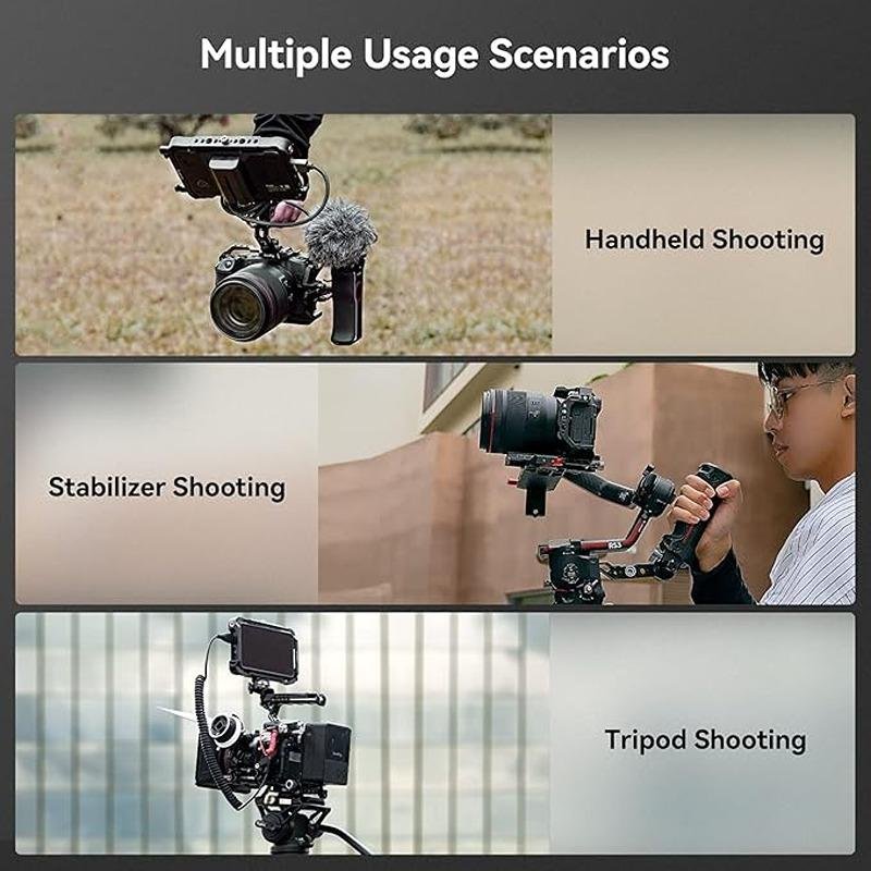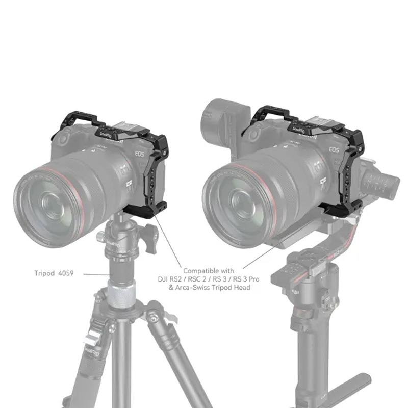 The SmallRig Cage for Canon EOS R8 (4212) is a durable and versatile solution designed to protect your Canon EOS R8 camera while providing ample accessory mounting options for enhanced functionality. This cage locks the camera securely using a 1/4”-20 screw at the bottom and two side lock adapters, ensuring a stable fit. Rubber pads are incorporated to prevent scratches and ensure protection during use. The design allows for full access to all important camera functions, including buttons, card slots, the flip screen, and the battery door, so you can keep your workflow uninterrupted. For accessory mounting, the cage features multiple options such as 1/4”-20 threaded holes, 3/8”-16 threaded holes, and ARRI 3/8”-16 locating holes. These allow you to mount accessories like the Monitor Mount 2903B, Magic Arm 3875, and more. The top cold shoe mount is ideal for attaching microphones (3468) or LED video lights (3286B), while the left NATO rail is compatible with Rotating Side Handles (3260 & 3813) for added comfort and stability during handheld shooting. A built-in QD socket allows you to easily attach a quick-release shoulder strap, and a strap hole provides extra convenience for secure handling. The bottom of the cage features an Arca Swiss quick-release plate, enabling seamless transitions between handheld, tripod, and gimbal (DJI RS 2 / RSC 2 / RS 3 / RS 3 Pro) shooting. Lightweight yet sturdy, the cage ensures you can protect your camera while expanding its creative potential without adding unnecessary bulk.