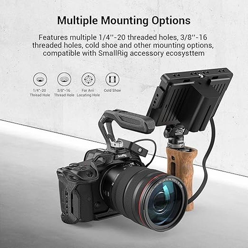 Multiple accessory mounts including ARRI locating holes and 1/4"-20 & 3/8"-16 threaded holes