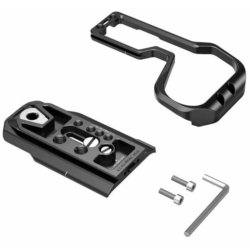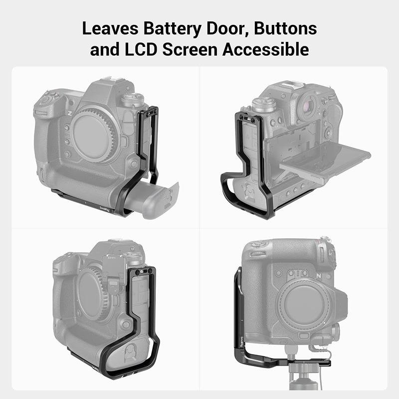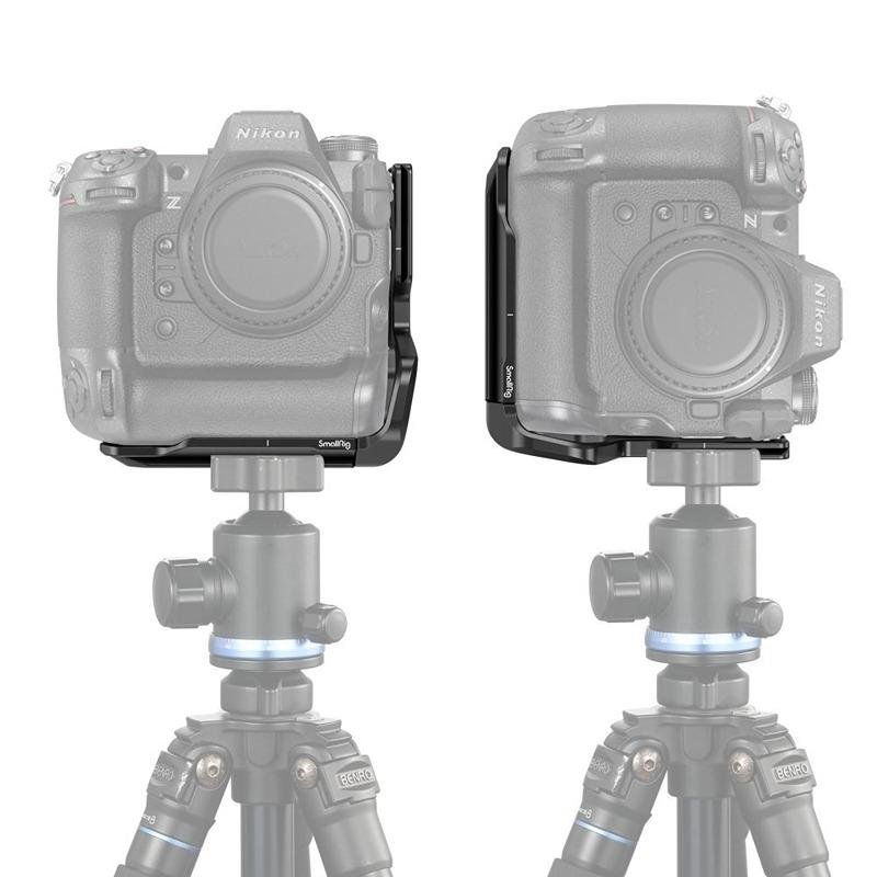 The SmallRig L-Bracket for Nikon Z 9 (3714) is a versatile and durable solution designed for seamless transitions between horizontal and vertical orientation shooting. Crafted for professional photographers and videographers, this L-bracket features an Arca-compatible side plate and base plate, making it easy to switch between different shooting angles while ensuring quick and secure mounting on your tripod. It is secured in place with a 1/4” screw and an anti-twist screw at the bottom to provide a stable connection. The design of this L-bracket allows for the convenient replacement of the camera’s battery without the need to remove the bracket, ensuring minimal disruption during shoots. The extendable side plate provides additional space to accommodate cables, allowing for a cleaner and more organized setup. Furthermore, the bracket is equipped with multiple built-in mounting ports, including 1/4”-20 and 3/8”-16 threaded holes, as well as wrist strap holes, making it highly adaptable for a variety of shooting scenarios. The bracket is thoughtfully designed to not obstruct the camera’s ports, buttons, card slots, or battery door, allowing for uninterrupted access to all essential controls and features, including the 4-axis tilting LCD screen. Whether you are shooting in the studio or on location, this L-bracket provides a stable, practical, and flexible solution that meets the demands of modern photography and videography.