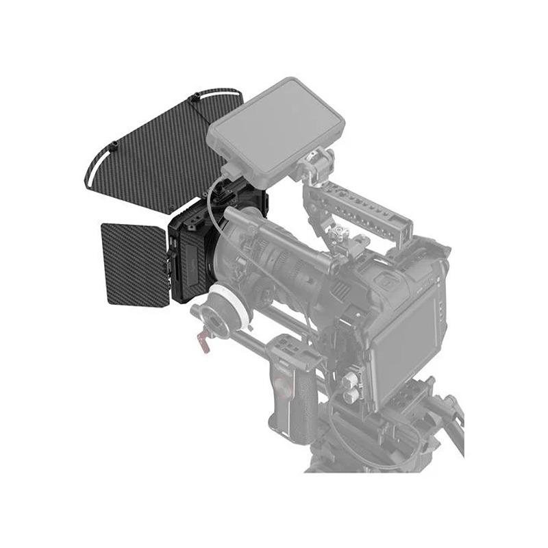 The SmallRig Mini Matte Box Pro 3680 is a compact and versatile solution for videographers seeking optimal light control in their shots. This lightweight matte box offers flexible installation options, allowing you to easily clip it onto your mirrorless camera lens or mount it using a rod system. With top and side flags that can open up to 180° and extendable side wings up to 40°, this matte box effectively blocks unwanted light and flares, ensuring clear, high-quality footage. The kit includes four adapter rings (62mm, 72mm, 77mm, and 82mm) for compatibility with a wide range of lenses, as well as two 4 x 5.65" filter trays to hold your filters securely. Whether you're using circular CPL or ND filters up to 92.5mm, the Mini Matte Box Pro provides the flexibility to accommodate them. Four 1/4"-20 accessory threads on the top of the matte box allow for additional accessories, such as a secondary monitor, articulating arm, or lights, to enhance your production setup. This matte box is not only practical but also designed to be lightweight and compact, making it easy to carry and use on location. Whether you're shooting on a gimbal, tripod, or handheld, the SmallRig Mini Matte Box Pro offers an excellent balance of convenience and performance, making it an essential tool for any serious filmmaker or content creator.