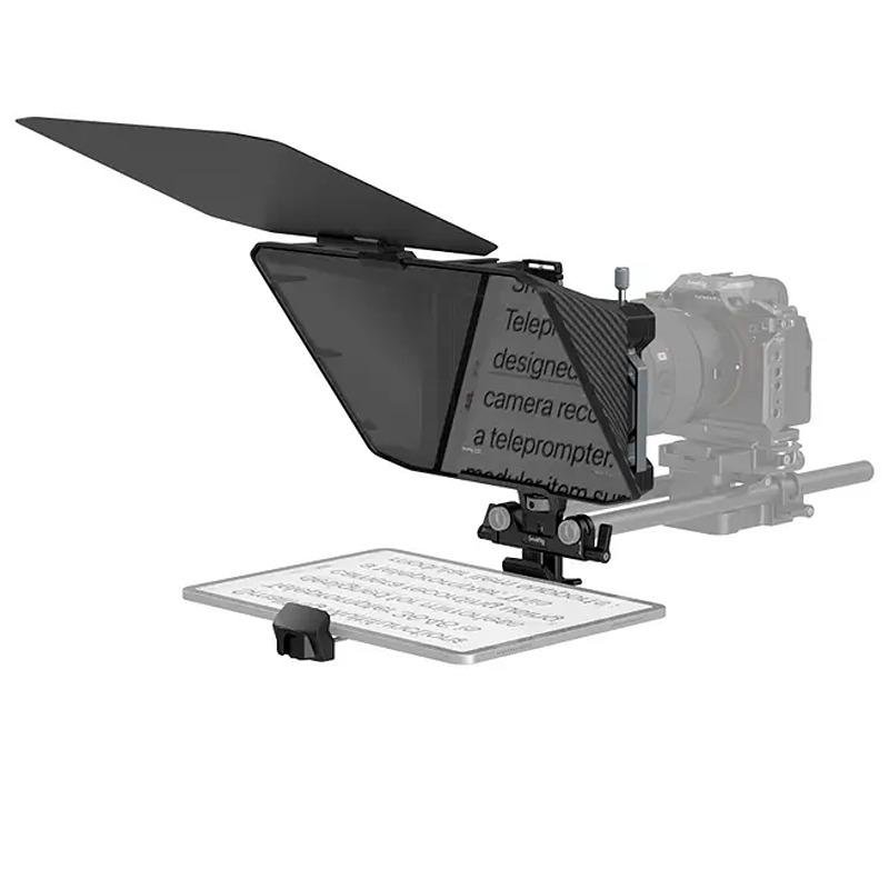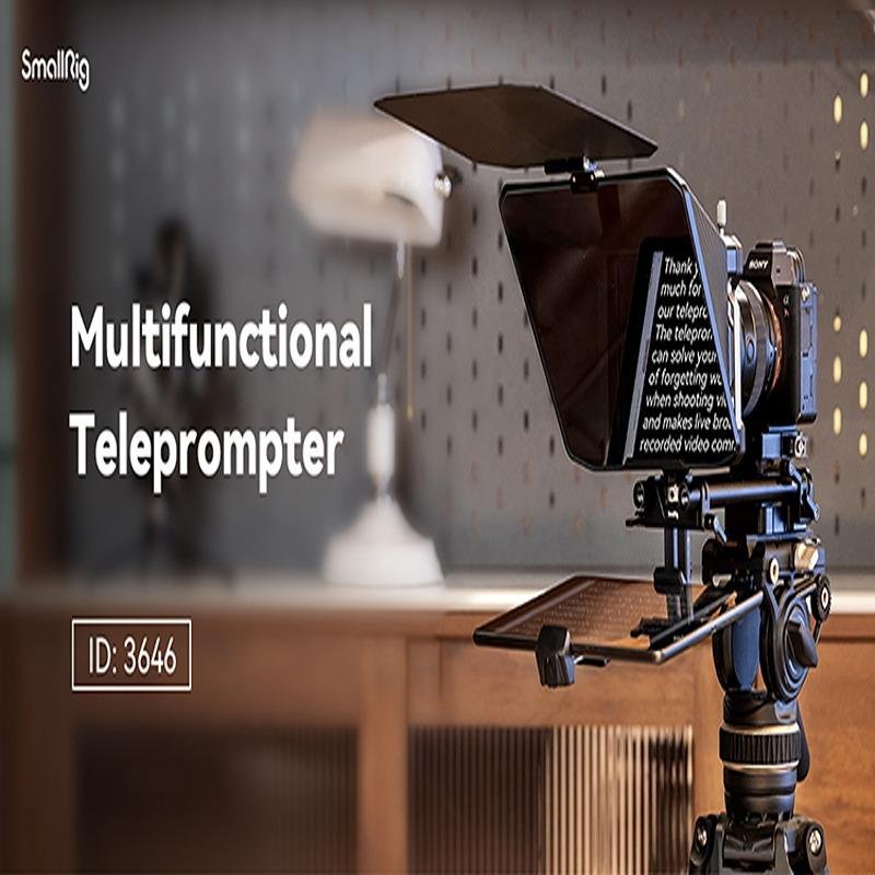 The SmallRig Multifunctional Teleprompter 3646 is a highly versatile and professional-grade teleprompter designed to enhance the recording experience for mirrorless camera users. Its modular construction supports a universal mirrorless lens up to Φ95mm and is equipped with a 15mm rail support system, ensuring lens mount protection. The teleprompter includes a quick-release lens hood that is easy to clean and helps to block unwanted light. A top flag and filter slot are included to effectively reduce glares and ghosting in challenging lighting environments, making it ideal for outdoor use. The device also comes with a tablet mount that can hold tablets up to 11.9" in size and functions independently for added convenience. To improve workflow, the teleprompter works seamlessly with the SmallGoGo app, which extracts and edits text from PDF, picture, Word, and TXT files, offering increased flexibility during preparation. Designed for mirrorless cameras with a focal length of ≥22mm, it ensures no vignetting during use, and the reflected text remains clear from up to 5 meters away when using an 11.9" tablet. This teleprompter is the perfect solution for those who require an efficient, portable, and reliable setup for video production, allowing easy script reading and seamless integration with various recording setups.