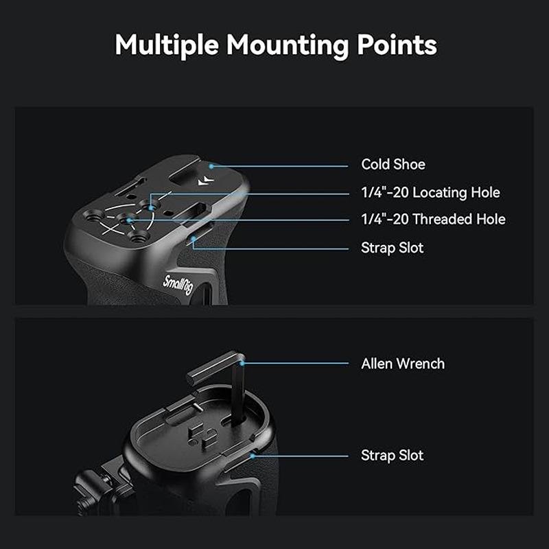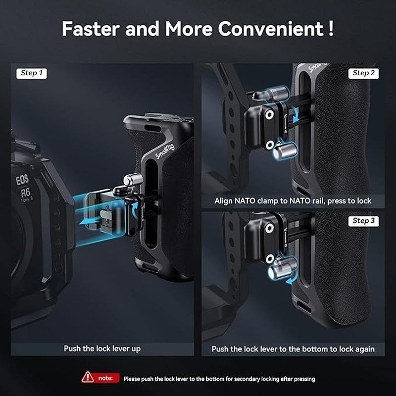 The SmallRig Snap-on Quick Lock NATO Side Handle 4017 is an essential accessory for camera rigs, designed to provide improved stability and ease of use during handheld filming. This versatile handle can be mounted on either the right or left side of your rig, offering flexibility for different shooting preferences. The quick-locking NATO clamp allows for swift attachment and detachment without the need for tools, making it convenient for fast-paced production environments. Additionally, the handle features 1.4 inches of vertical adjustment, allowing you to fine-tune the positioning for maximum comfort. For added functionality, the handle comes equipped with 1/4"-20 threaded holes for mounting accessories, as well as a cold shoe mount for attaching microphones or lights. A wrist strap slot is also included for securing the rig to your body for better stability and control. The handle boasts a remarkable 26.4 lb load capacity, ensuring it can support your gear with confidence. The built-in magnetic Allen key provides quick and easy access for adjustments, making the handle even more user-friendly. Whether you're shooting on a gimbal, tripod, or handheld, the SmallRig Snap-on Quick Lock NATO Side Handle is the perfect addition to your camera rig, offering improved comfort, stability, and versatility for your filming needs.
