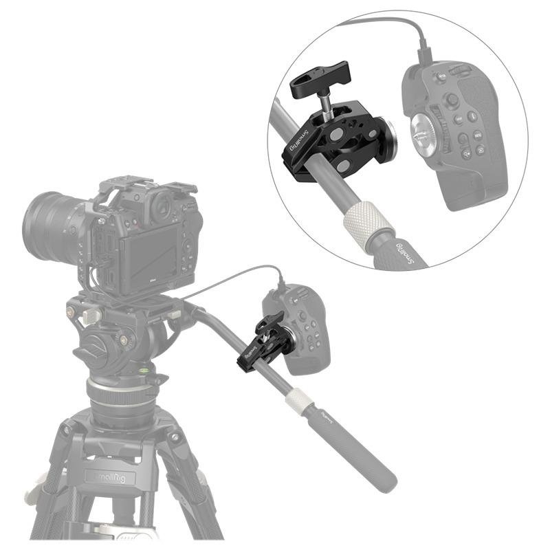 The SmallRig Super Clamp with ARRI Rosette Mount 4249 is a versatile and sturdy clamp designed to facilitate easier shooting and camera movement by attaching remote handles to a tripod or slider. This clamp supports handles equipped with ARRI rosettes, including those of popular models such as the Nikon MC-N10 and Sony FX6, allowing for smooth control and flexibility in camera operation. With a clamping range of 14mm to 55mm, the Super Clamp can securely attach to a wide variety of tripod handles, rods, and other equipment, making it ideal for diverse shooting setups. Built-in anti-slip cushions ensure a secure grip, preventing any accidental slippage, even in dynamic filming environments. The Super Clamp also features multiple mounting points, including a 1/4"-20 threaded hole and an ARRI 3/8"-16 locating hole, allowing users to attach accessories like Magic Arms (such as the Magic Arm 3875 & 2115C). Constructed from high-quality aircraft-grade aluminum alloy and stainless steel, the clamp delivers exceptional durability, making it suitable for long-term use in professional environments. Whether used for stabilizing a handle or providing additional mounting options for accessories, this clamp is a reliable tool that enhances workflow and allows for flexible, precise camera movements during shoots.