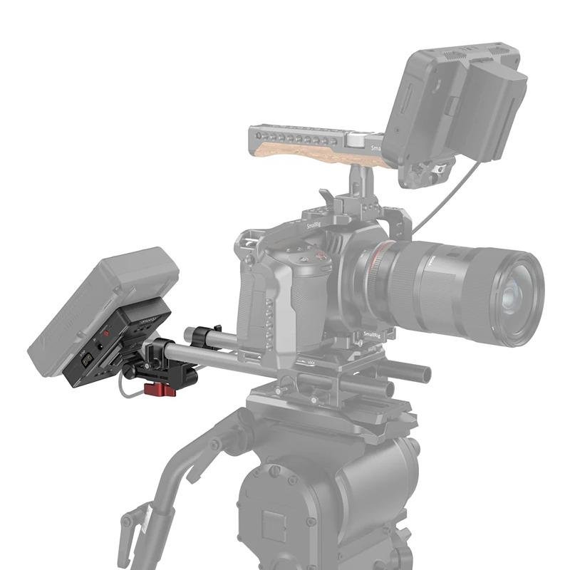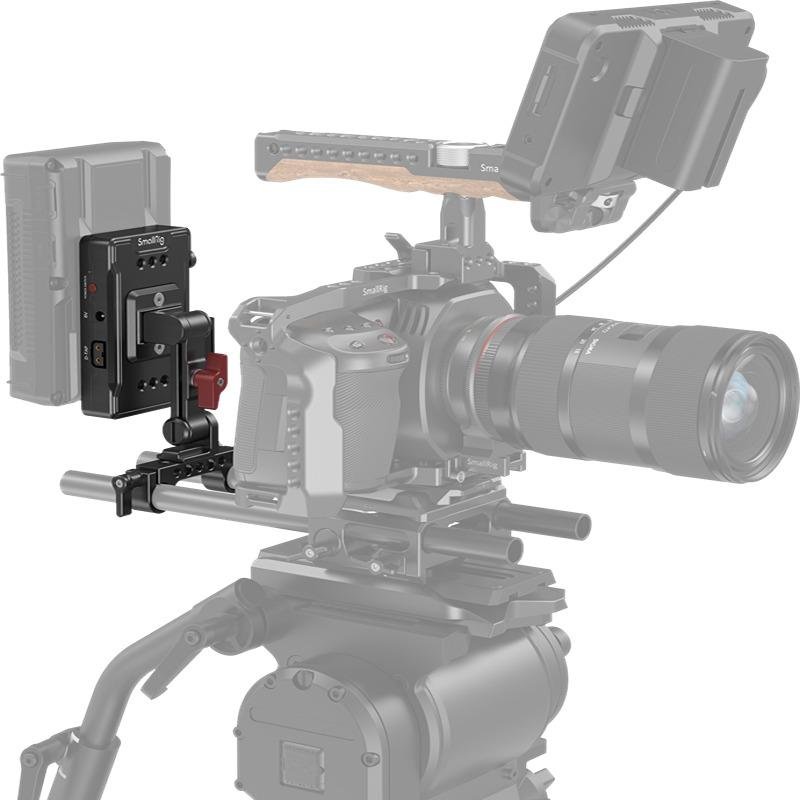 The SmallRig V-Mount Battery Adapter Plate (Basic Version) with Extension Arm 3499 is an essential accessory designed to extend your camera rig’s battery life. It enables you to power your camera and accessories for longer durations during run-and-gun shooting. This adapter plate is compatible with most V-mount batteries (except for the PAGlink series and Patona Premium Battery for BP-190WS), providing efficient power distribution. It features a standard quick-lock V-mount for easy attachment of your battery and offers multiple power output options, including two 14.8V D-Tap ports, one 8VDC port, and one 12VDC port, making it versatile enough to power your camera, lights, monitors, and other accessories. The adapter plate can be securely mounted on a 15mm rod system using the included dual-rod clamp, and the included extension arm allows you to adjust the angle for optimal positioning. Multiple 1/4"-20 thread holes on the plate enable you to attach accessories such as a magic arm or super clamp mount, adding flexibility to your rig setup. For convenience, the on/off switch allows you to quickly control the power to all connected devices, enhancing workflow efficiency. Whether you're shooting on-location or in the studio, the SmallRig V-Mount Battery Adapter Plate ensures your camera rig stays powered and ready for action.