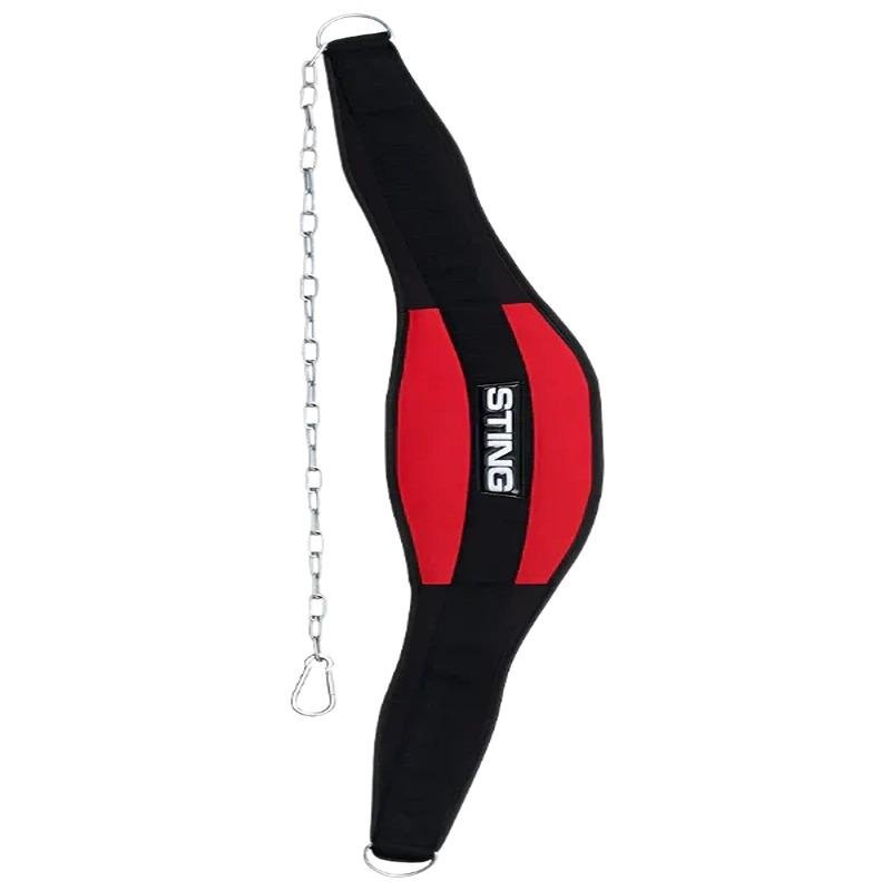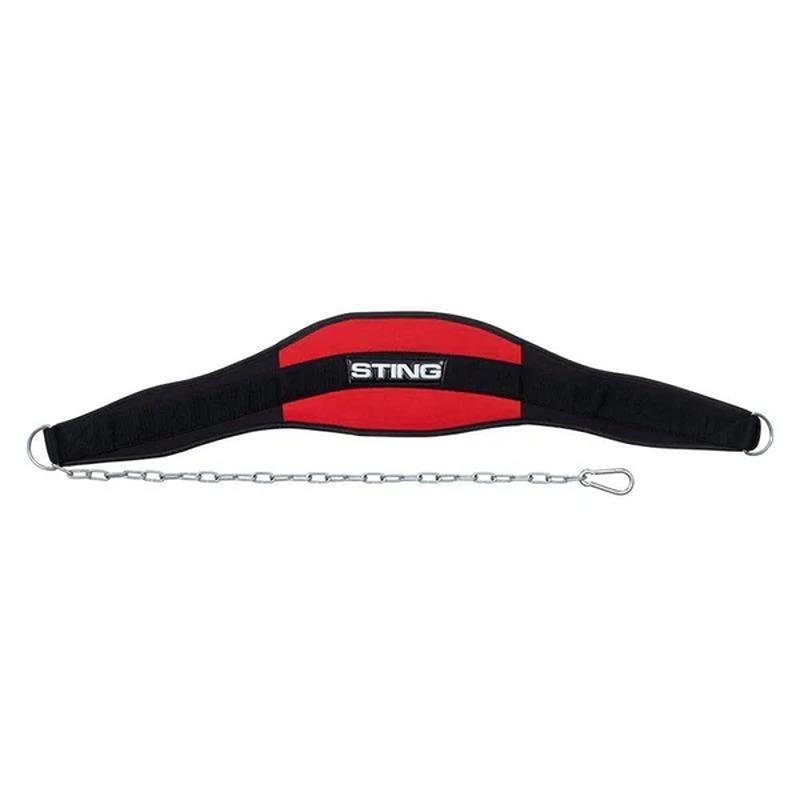 The STING 7INCH NEO DIP BELT - S1DB-NE71 is a premium lifting accessory designed for individuals who demand strength, support, and comfort during their weight training routines. Crafted from super-soft and flexible neoprene, the belt ensures comfort without compromising on durability. The anatomical design of the belt allows for maximum range of movement, making it perfect for exercises like dips, pull-ups, and weighted squats. The 7-inch width, combined with a 3-inch support strap, provides additional strength, offering a secure fit to your waist for optimal performance. For enhanced comfort and muscle warmth, the belt features extra-thick memory foam padding that molds to your body. The memory foam also provides lumbar support and stability, helping reduce strain on your lower back during intense training sessions. A stainless steel chain and hook are included for easy attachment of weights, offering a reliable and secure way to add resistance to your dips or pull-ups. The belt's construction is reinforced with lock-stitched, corrosive-resistant, high-density nylon, ensuring long-lasting durability even under heavy loads. This combination of comfort, support, and durability makes the STING 7INCH NEO DIP BELT an essential piece of equipment for anyone looking to maximize their strength training and achieve their fitness goals with confidence.