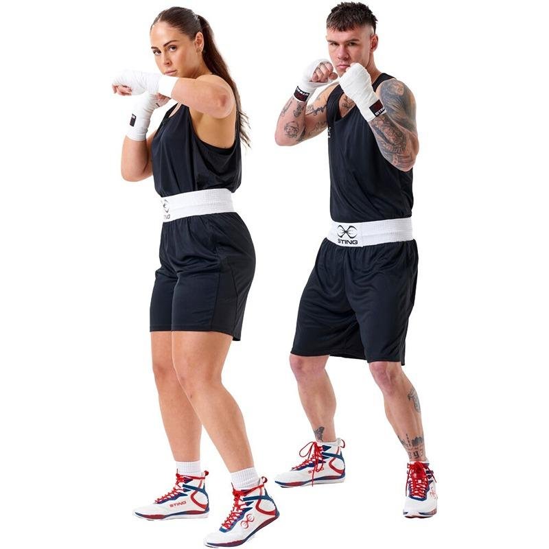The STING Men’s Mettle Boxing Singlet in size S (M-ST1027-BK01) is a top-tier choice for boxers seeking optimal performance, comfort, and style. Made from premium 100% polyester interlock fabric, this singlet offers durability, breathability, and moisture-wicking properties, keeping athletes cool and dry during intense training sessions. Designed with an athletic cut, it ensures freedom of movement, allowing boxers to perform at their best without any restrictions. The diamond weave fabric provides climate control, helping regulate body temperature, ensuring maximum comfort during workouts or competitions. This lightweight singlet minimizes distractions, enabling athletes to focus on their performance. The durable construction can withstand the rigors of competitive boxing and regular training, ensuring long-lasting use. The sleek black design not only adds style but also empowers boxers to express their confidence in the ring. With its perfect blend of functionality and modern design, the Mettle Singlet allows athletes to train with ease, improving performance while maintaining comfort and style throughout their sessions.