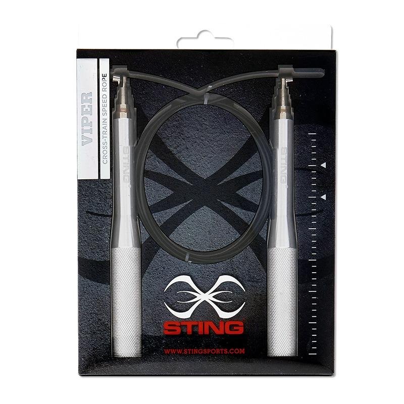 The STING VIPER CROSS TRAIN SPEED ROPE - S13S-VPC1 is the ultimate fitness tool for athletes aiming to boost their speed, coordination, and endurance. Crafted with a coated aircraft cable, this rope delivers unmatched strength and durability, making it suitable for intense, long-lasting training sessions. The heavy-duty aluminum handles are ergonomically designed to provide a firm grip and enable maximum speed, helping athletes achieve faster rotations with precision. The rope features an adjustable length, allowing for customization based on the athlete's height and training preferences, making it perfect for individuals of all skill levels. The dual closed bearing swivel technology ensures smooth, effortless rotations, minimizing friction and maximizing efficiency for a fluid workout. Whether you’re training for boxing, cross-training, or general fitness, this speed rope helps enhance agility, footwork, and cardiovascular endurance. The STING VIPER CROSS TRAIN SPEED ROPE - S13S-VPC1 is built for serious athletes who need a reliable, durable, and fast rope to improve their performance. Designed to withstand heavy use, this speed rope offers superior functionality, precision, and longevity, ensuring that it remains a crucial part of your training routine for years to come.