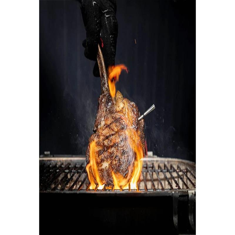 The MEATER Pro Wireless Meat Thermometer (formerly MEATER 2 Plus) is the pinnacle of precision and convenience for both novice and seasoned cooks. Designed for both the BBQ grill and kitchen use, this advanced thermometer features six precision sensors for ultimate calibration, ensuring that your meat is cooked to perfection every time. The thermometer is 100% waterproof, making it ideal for a variety of cooking methods including deep frying and sous vide. Thanks to Bluetooth 5.2 Coded PHY Long Range wireless technology, you can monitor your cooking from up to 50 meters away. With the Smart Temp™ Multisensor Technology, the MEATER Pro continuously checks the internal and ambient temperatures to guide you to your desired cooking results, preventing overcooking or undercooking. It also supports direct heat grilling up to 550°C, allowing you to leave the probe in the meat while searing over an open flame. This thermometer’s fast charging feature means that just a 15-minute charge gives you 12 hours of use, while a full charge lasts up to 24 hours. The MEATER Pro also offers customizable alerts through the MEATER app, letting you know when to remove your meat from heat, how long to rest it, and when it’s time to eat. The sustainable honey bamboo wood charger is both eco-friendly and functional, featuring a magnetized base for easy attachment to metallic surfaces. It’s also designed for easy cleaning as it's dishwasher-safe, so you can focus on cooking, not cleaning. Whether grilling, roasting, or frying, the MEATER Pro is an indispensable tool for the perfect meal.
