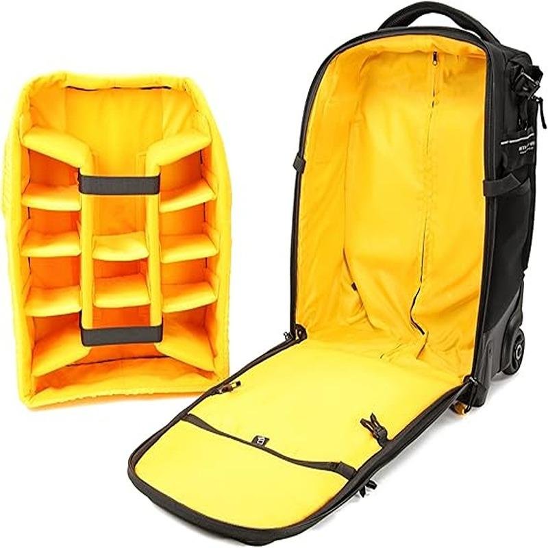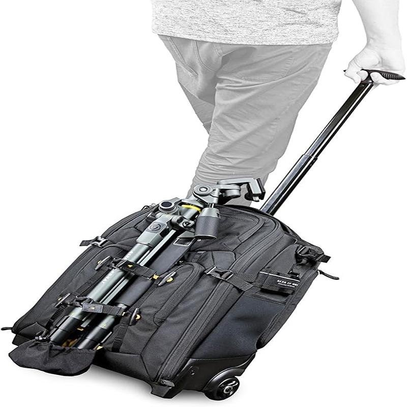 The Vanguard Alta Fly 49T Rolling Camera Bag is designed for photographers who need an efficient, durable, and well-organized solution for transporting their professional camera gear while traveling. This versatile rolling camera bag can carry 1-2 Pro DSLRs, 5-7 lenses (up to 300mm f/2.8), a flash, accessories, and a 14” laptop, ensuring that you have everything you need within easy reach. The top access design allows for quick retrieval of your camera gear, so you won’t miss a shot when you're on the move. The bag also features an innovative ALTA LINK System, which is compatible with ALTA ACTION Tripod Bags, allowing you to carry a large tripod for optimal balance. Additionally, you can store a smaller tripod or lighting stand on the side for added convenience. The Alta Fly 49T is compact enough to be carried as hand luggage, though it’s always a good idea to check with your airline for current rules regarding carry-on size and tripod inclusion. With its strong, durable construction and smooth-rolling wheels, this bag ensures that your gear is safely transported through airports or rough terrain. Whether you’re heading out for a local shoot or traveling internationally, the Alta Fly 49T Rolling Camera Bag is a reliable choice for keeping your gear safe, organized, and easily accessible.