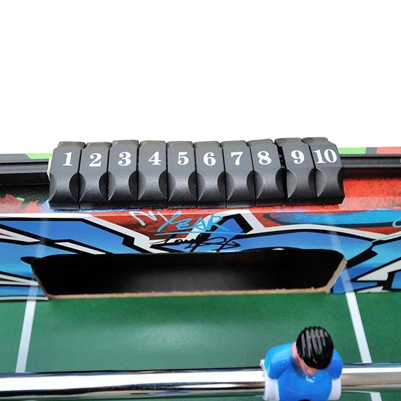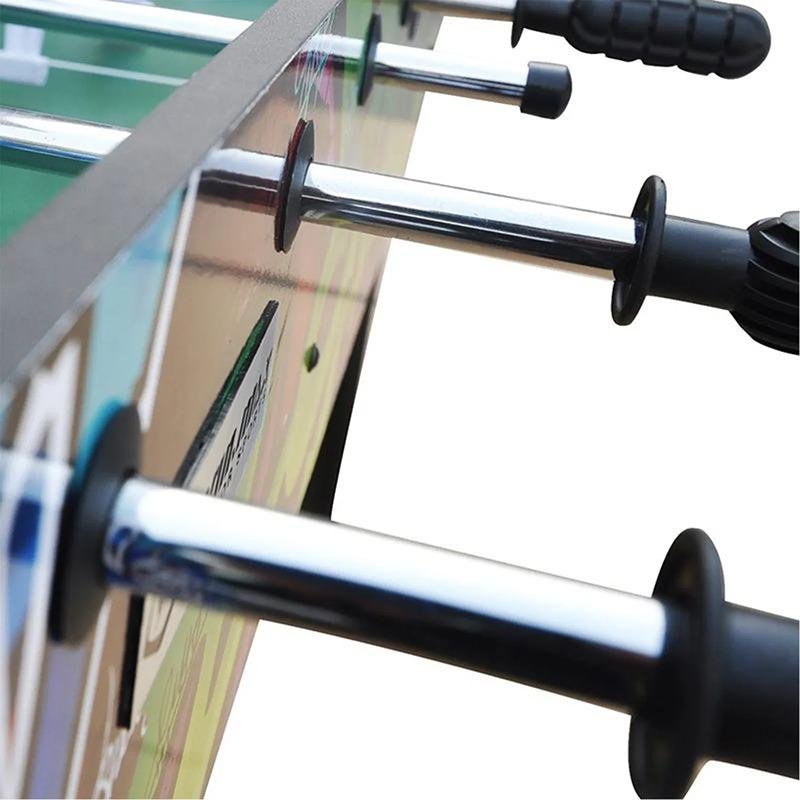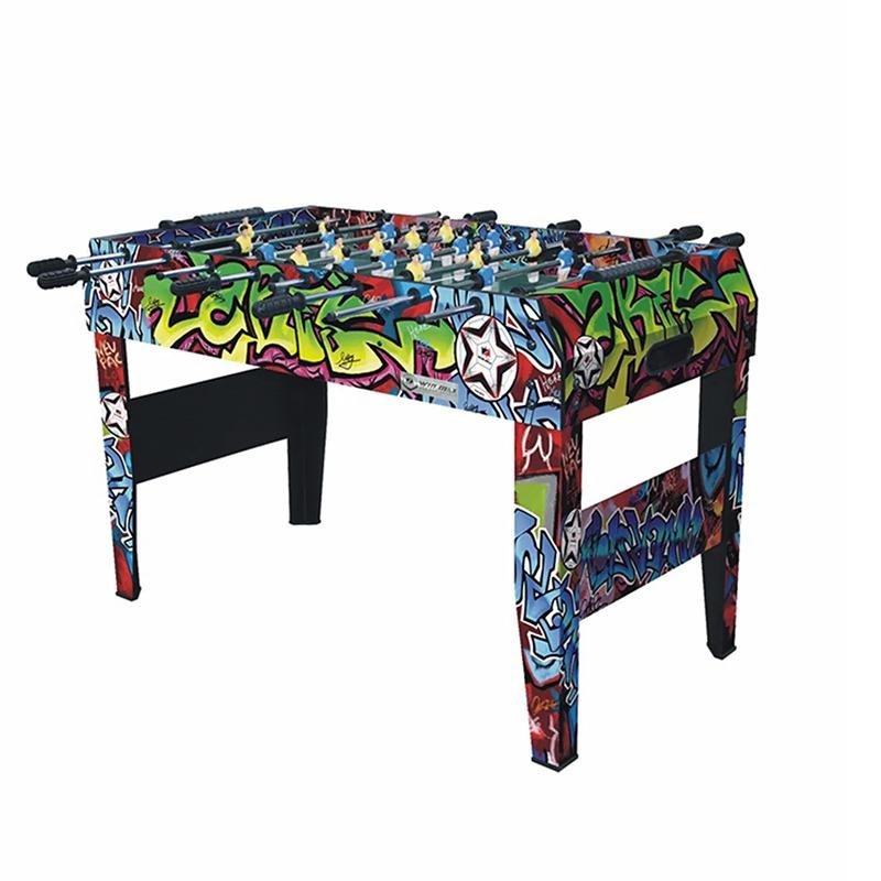 The WINMAX Doodle Soccer Table (WMG08818) is a 4FT indoor football table designed to bring hours of entertainment to both kids and adults. This compact yet durable table features a high-quality MDF wooden build with a vibrant color sticker pattern, adding a fun and stylish touch to any space. The table is equipped with strong 12.7mm diameter chrome-plated steel rods with slide bearings for smooth and easy rotation during intense play. It also includes ball serve cups on both sides for convenience, ensuring quick and easy setup for the next round. The side and end aprons are made with 12mm and 6mm thick MDF boards, providing enhanced durability, and are finished with a printed PVC laminate for a sleek appearance. The molded players, in blue and yellow, are designed for optimal gameplay, offering an enjoyable experience for players of all skill levels. Additionally, the table comes with an easy-to-follow assembling guide, making setup quick and hassle-free. With its compact size of 121 x 61 x 80 cm and a weight of 19 kg, the WINMAX Doodle Soccer Table is perfect for homes, offices, and recreational spaces. Whether you're hosting a game night with friends or practicing your skills, this table provides a fun and competitive playing experience.